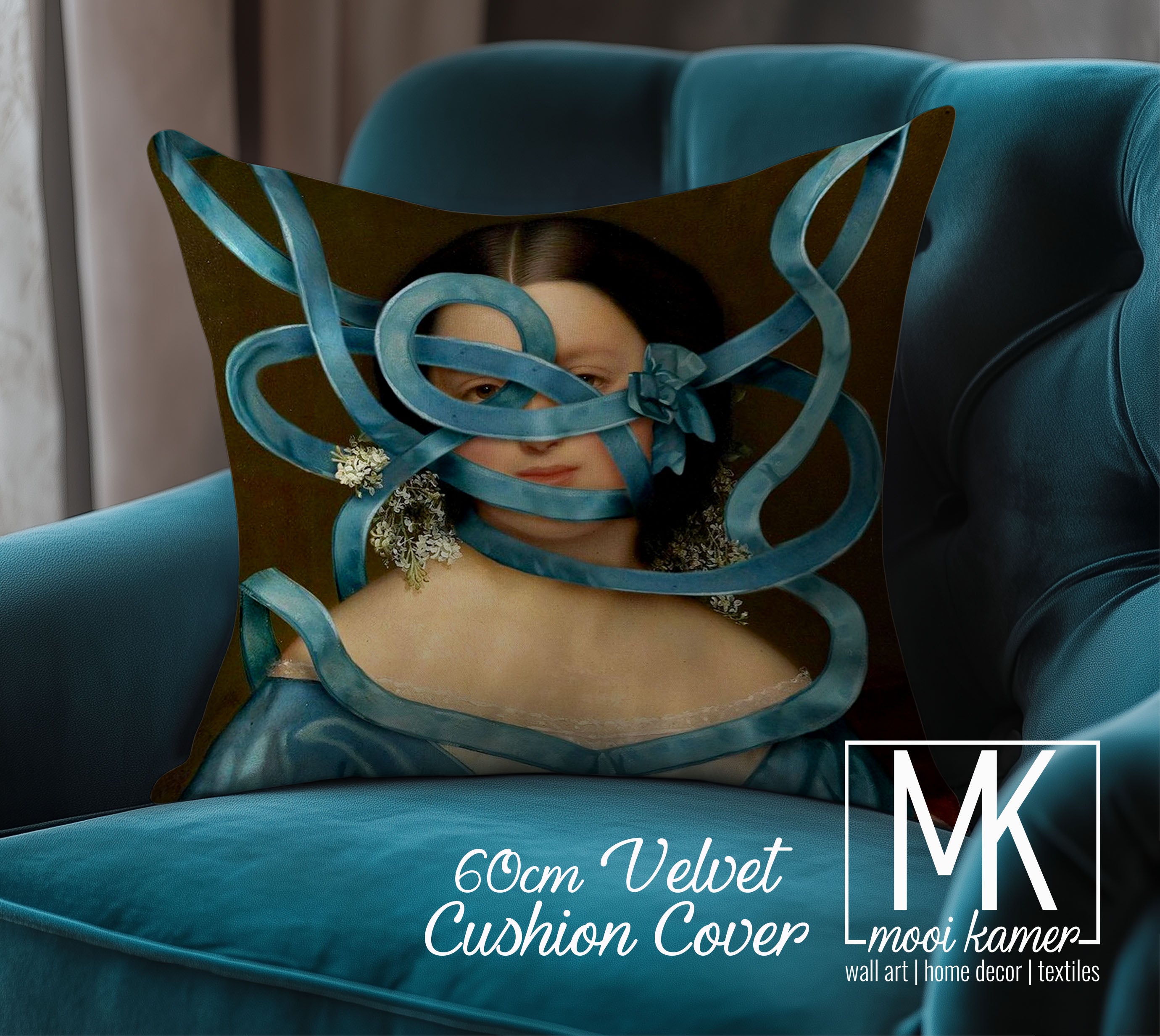 Art on Velvet Cushion | 60cm | Ribbon Lady