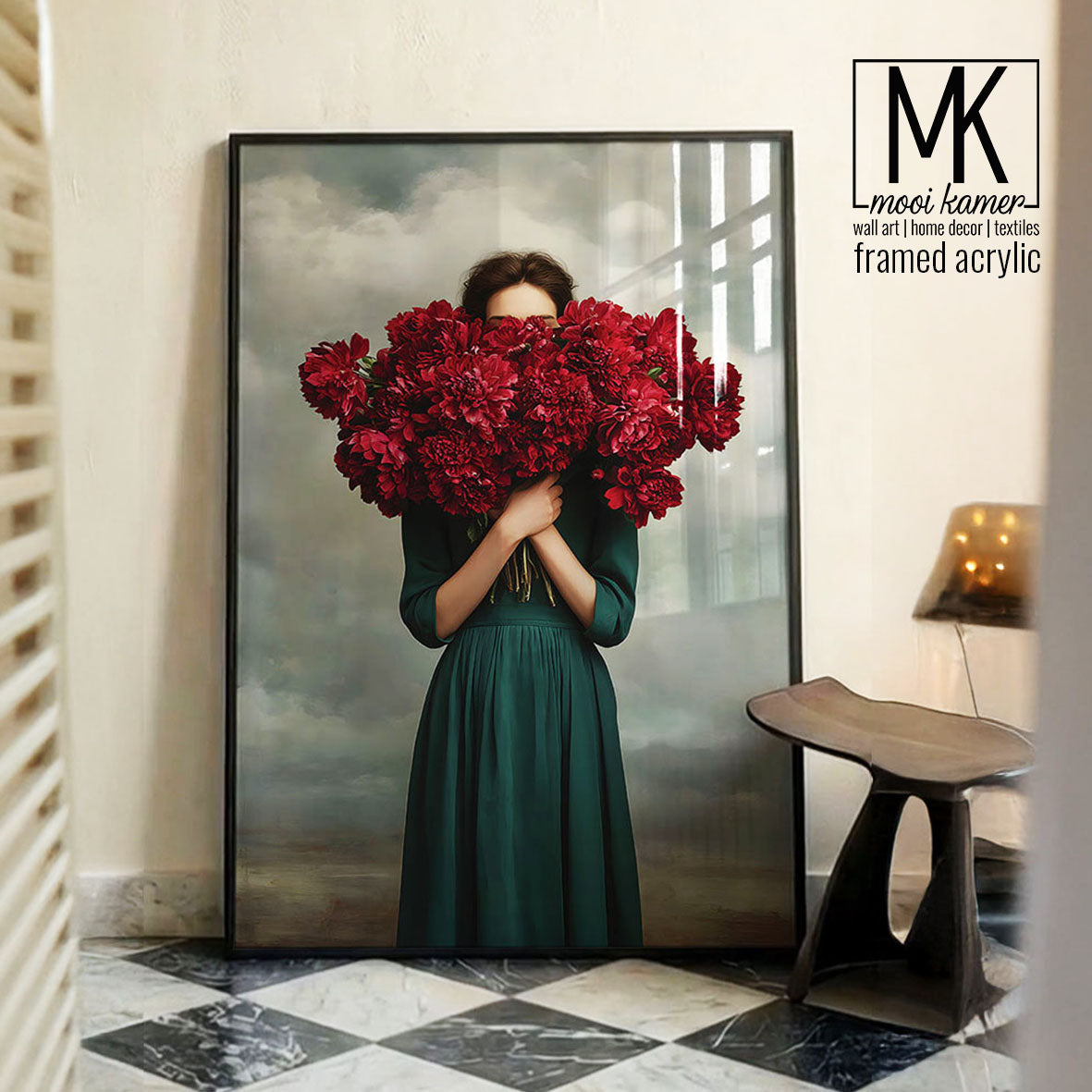 Framed | Acrylic | Girl with Red Flowers