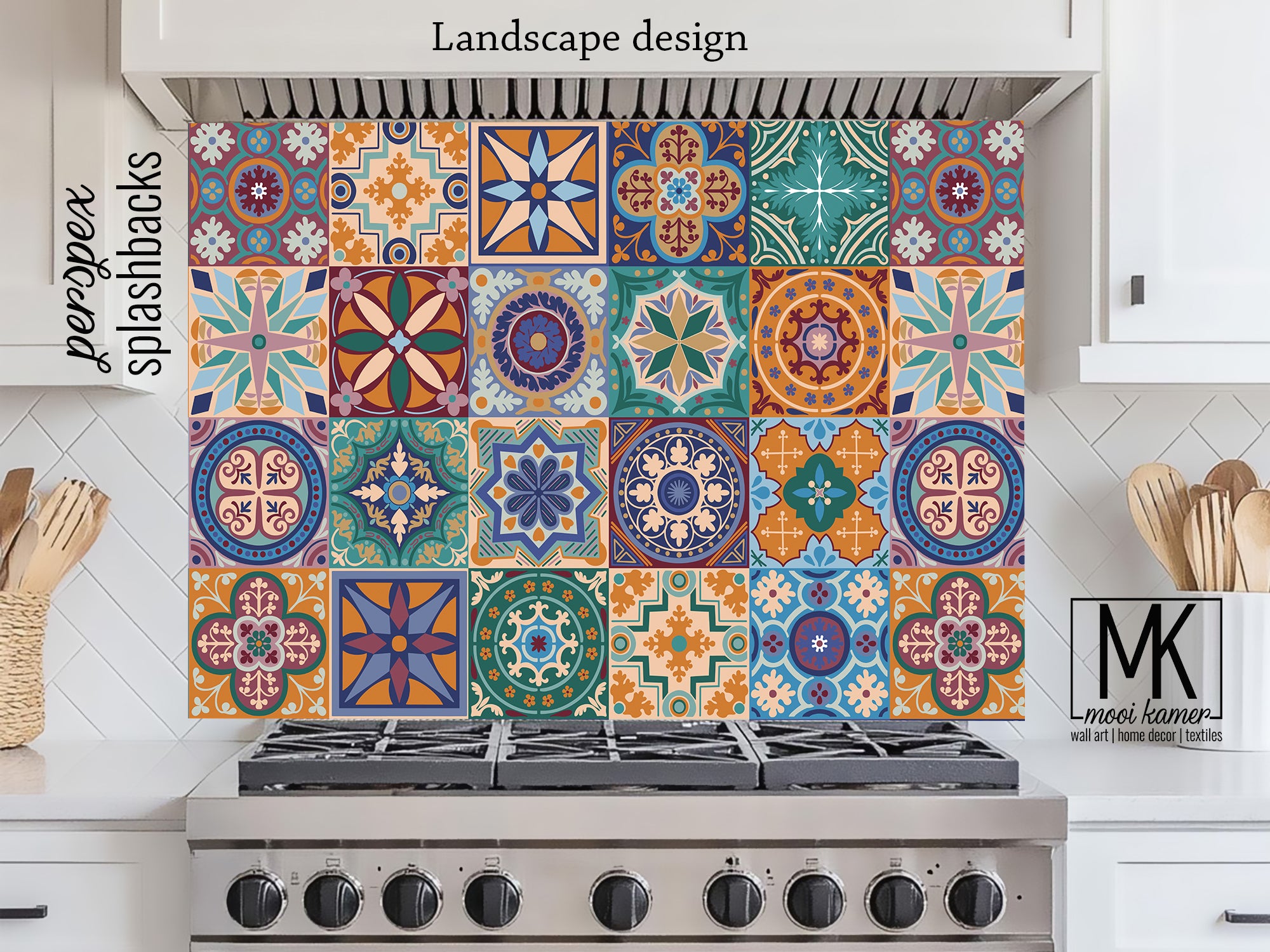 Our splashbacks are available in a wide range of standard sizes and can be designed in Portrait, Landscape, or Square orientations.